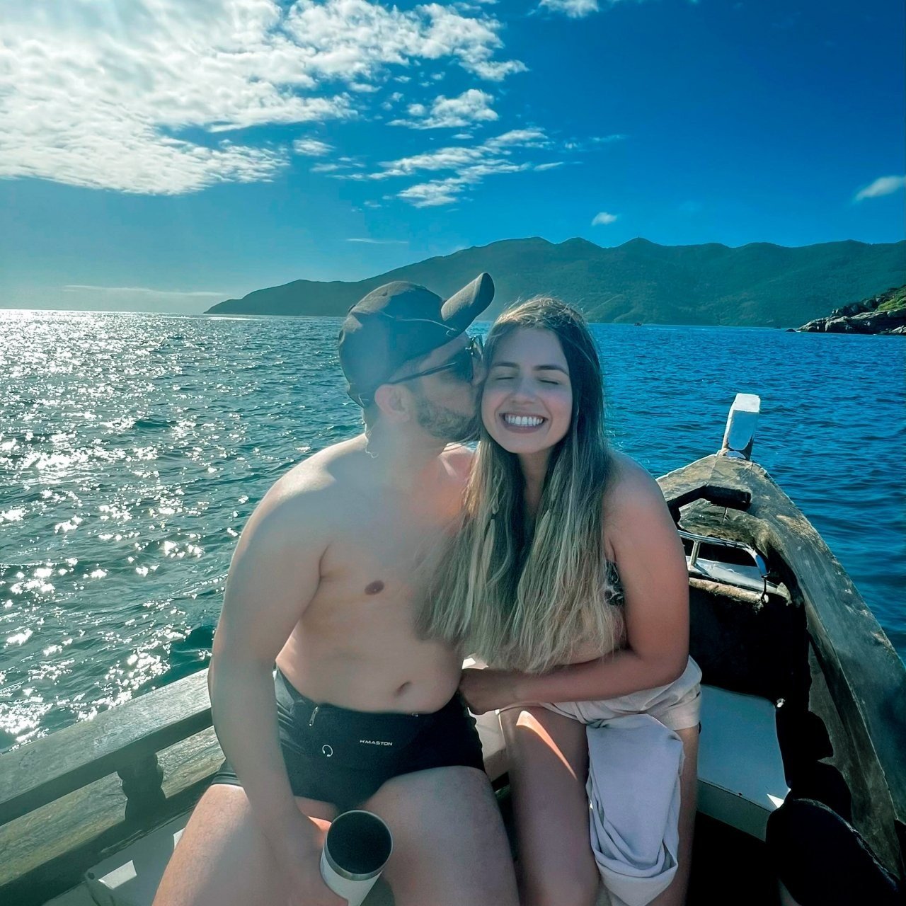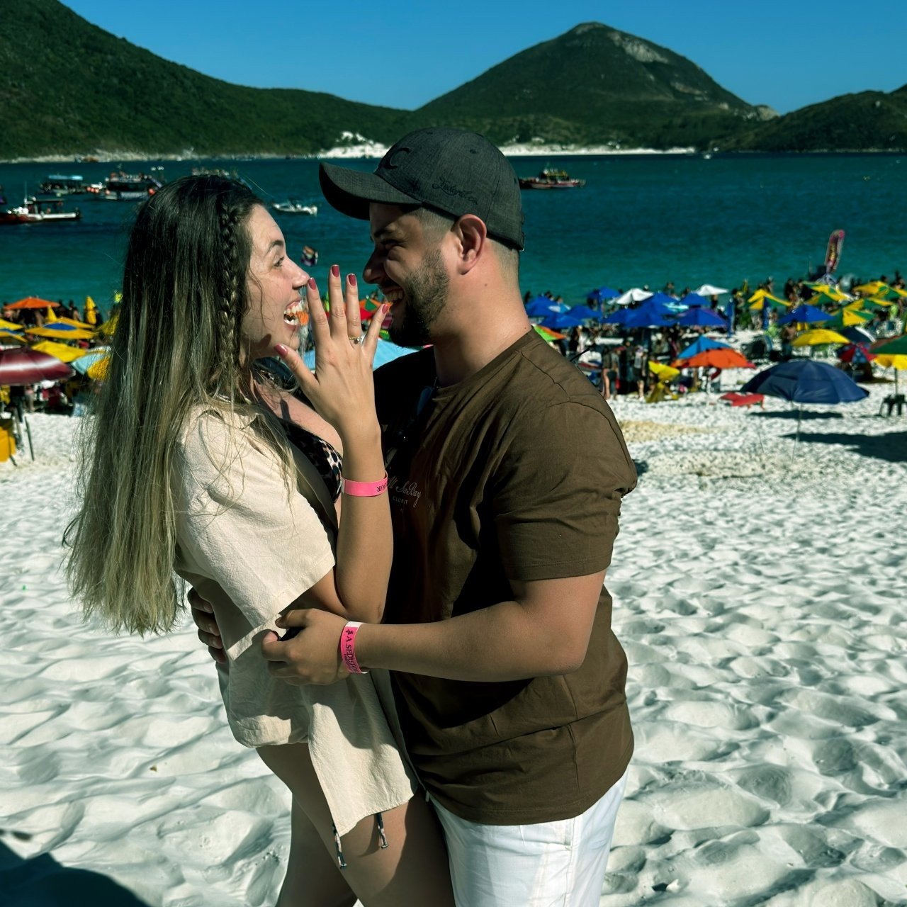 Meses antes do pedido, eles já sabiam que queria dar o próximo passo. Hudson por sua vez guardou segredo durante seis meses, amigos e familiares já sabiam. Em uma viagem para Arraial do Cabo, diante de um cenário que parecia pintado por Deus, ele se ajoelhou e fez a pergunta que já habitava seu coração há muito tempo. Surpresa, ela disse o “sim” mais importante da sua vida e, ao mesmo tempo, um dos mais fáceis.